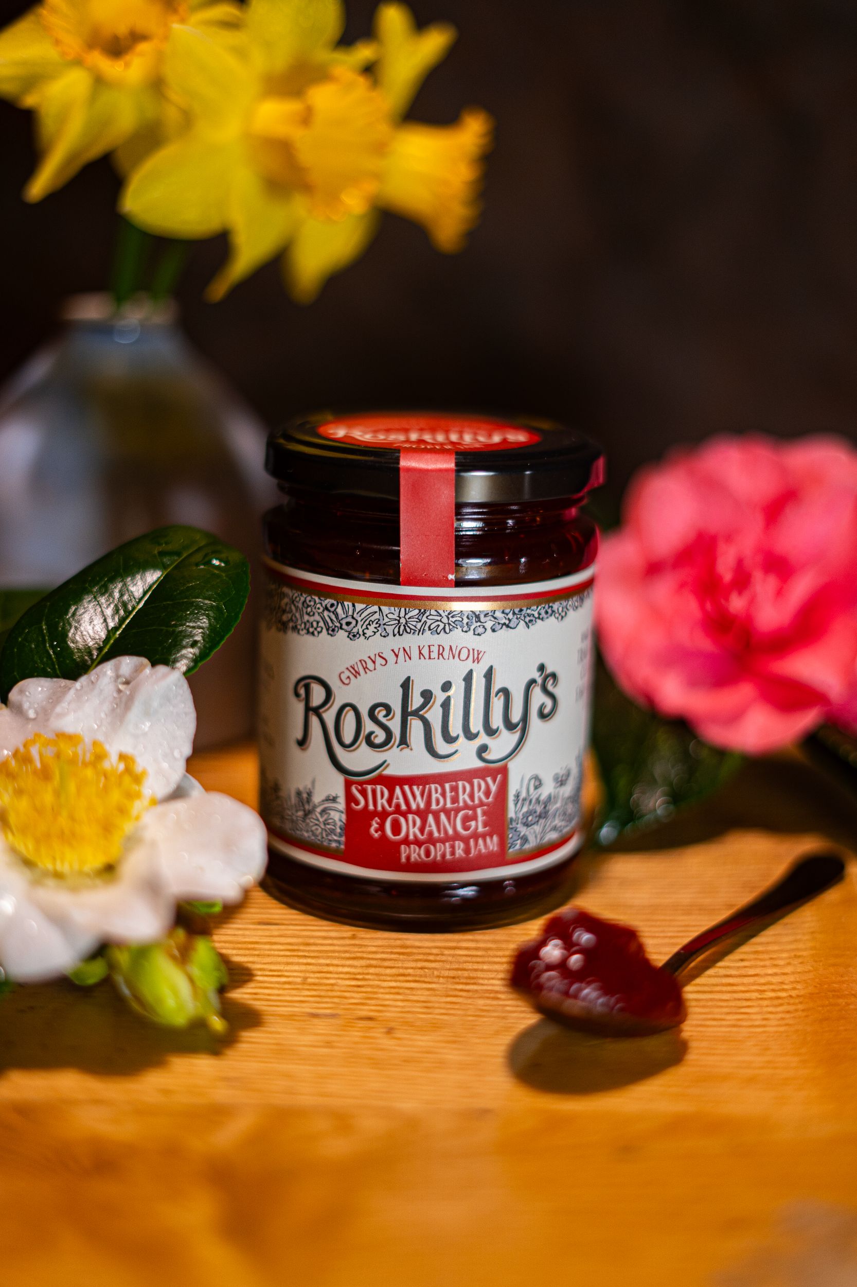 Strawberries 49%, Sugar, Gelling Agent: Pectin, Orange Zest 0.2%, Acidity Regulator: Citric Acid. Prepared with 56g of fruit per 100g of finished product Total Sugar Content 62g per 100g